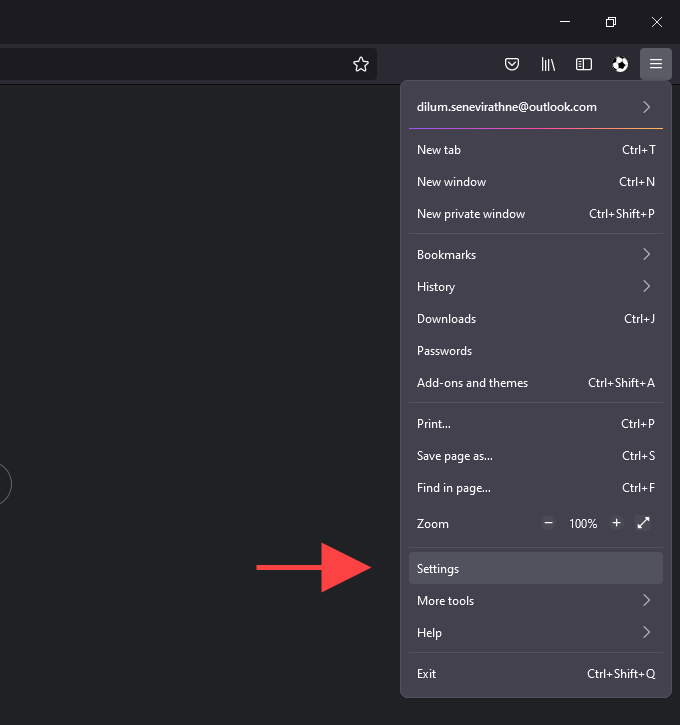 - Open the **Firefox **menu and select Settings.