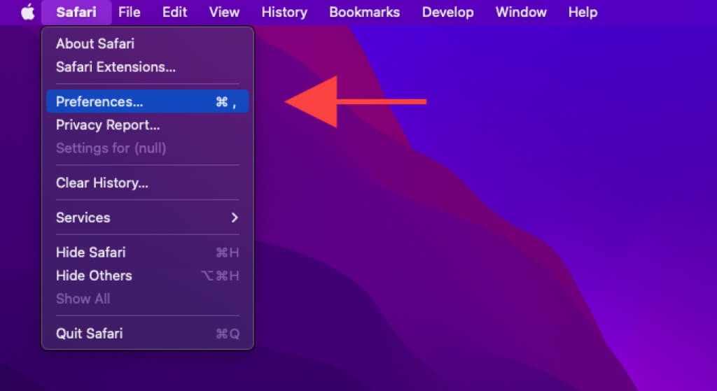 Select **Safari **> **Preferences **on the menu bar.