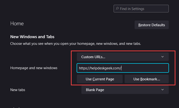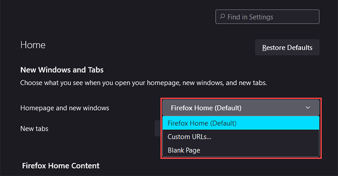 **Note:** All three options also apply to the homepage and new windows in Firefox.