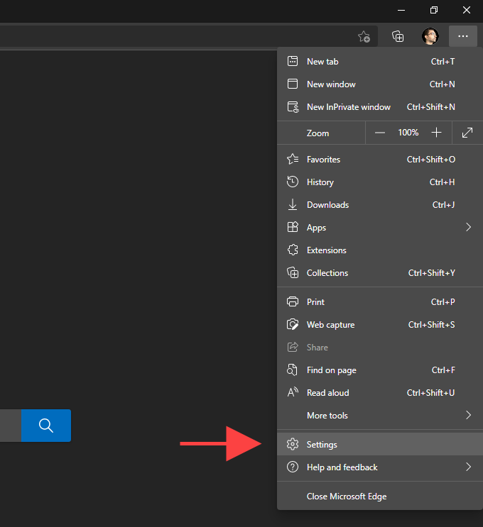 - Open the **Edge **menu and select Settings.
