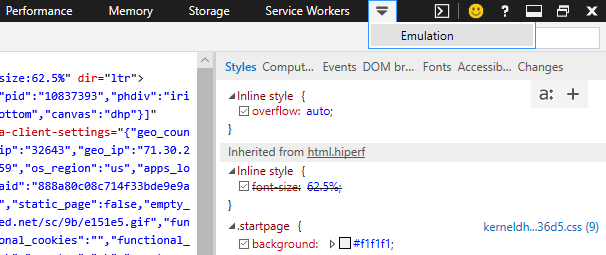- In the right-side panel that opens, look for Emulation across the top. Depending on your resolution size, you may not be able to find it at first, but if you click on the arrow pointing downwards with the More tools tooltip, you’ll find it.