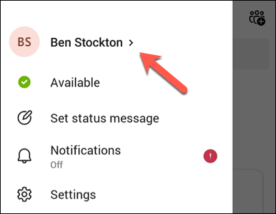 - Select your current profile picture in the top-left corner. From the menu, select your name.