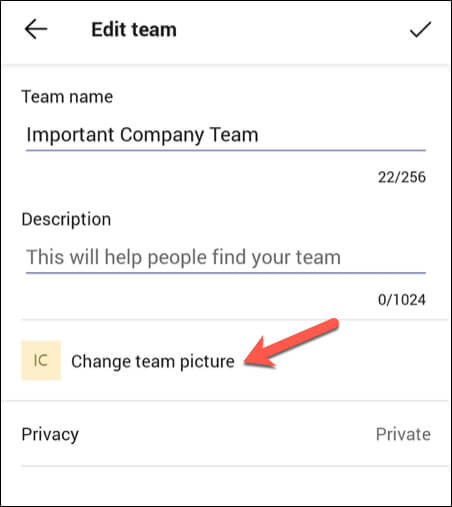 - Tap Change team picture to add a new photo.