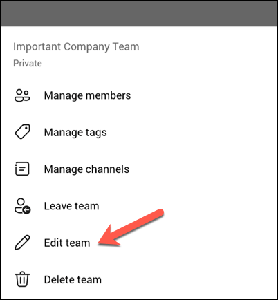 - Select the Edit team option at the bottom.
