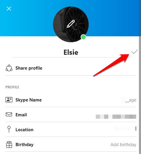 - Update the display name on your Skype profile. Click or tap the check mark to save your changes. You can change the display name anytime and as many times as you want, but it takes some time to update and display on your profile.