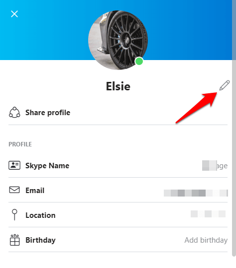 - Next, tap your Skype display name or tap the **Edit **icon next to it.