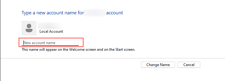 The most convenient way to change a username for a local account is through the Control Panel in Windows 11 and 10. Just: