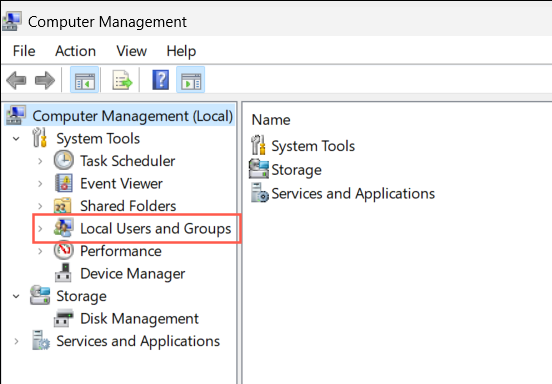 - Expand the **System Tools** category and select **Local Users and Groups**.