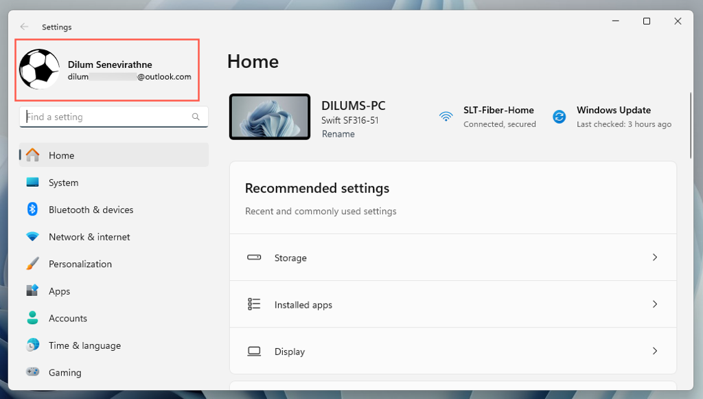 If you see a name and email address, you’re signed in with a Microsoft account. If it says “Local Account,” you’re using a local account.