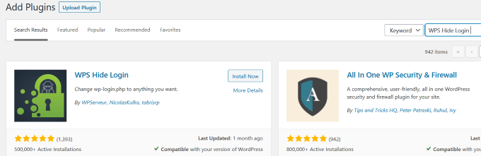 You can download the plugin or upload it from the backend of WordPress by searching for it. Go to Plugins > Add New. Search for WPS Hide Login from the WordPress Plugin Repository.