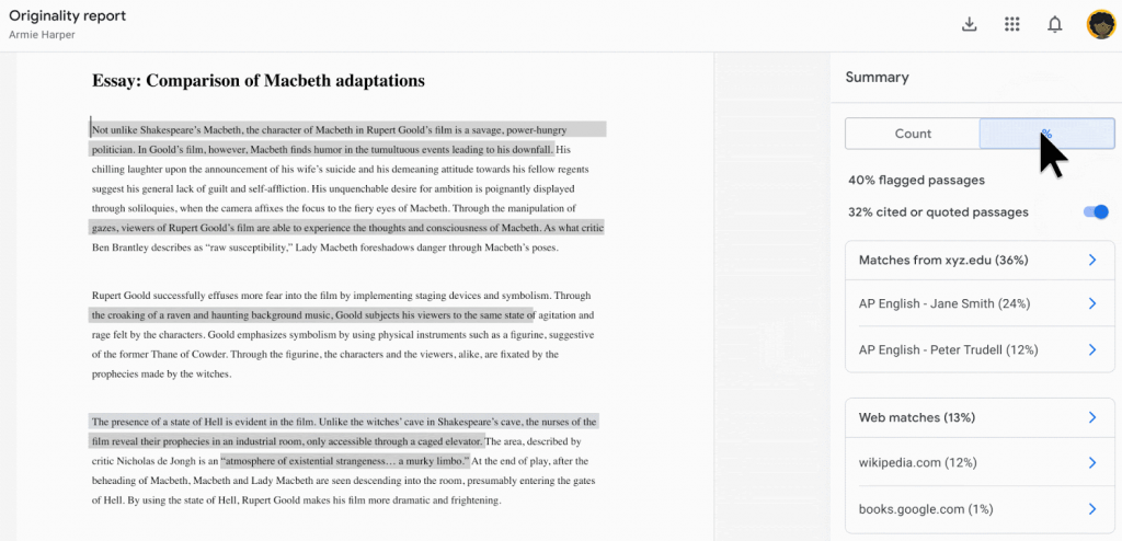 This feature is available to students and educators that use Assignments, Google’s app for learning management. It is typically used together with Google Classroom or Google Workspace. The students who wish to use the Originality Report only need a Google account. However, this feature needs to be turned on by the teacher.