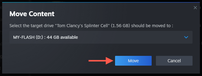 - Pick the target destination and select Move to confirm.