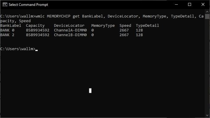 This shows you the size and speed of each memory module, but doesn’t tell you the type of memory. If you want that information, we need to add a few bits to the command.