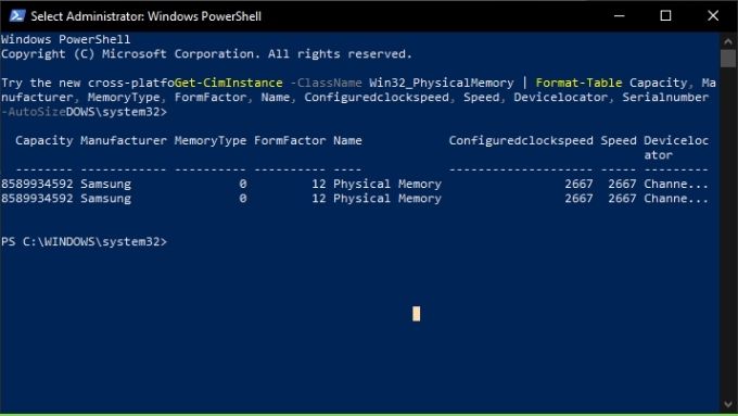 Getting Your RAM Info from the Command Prompt or PowerShell