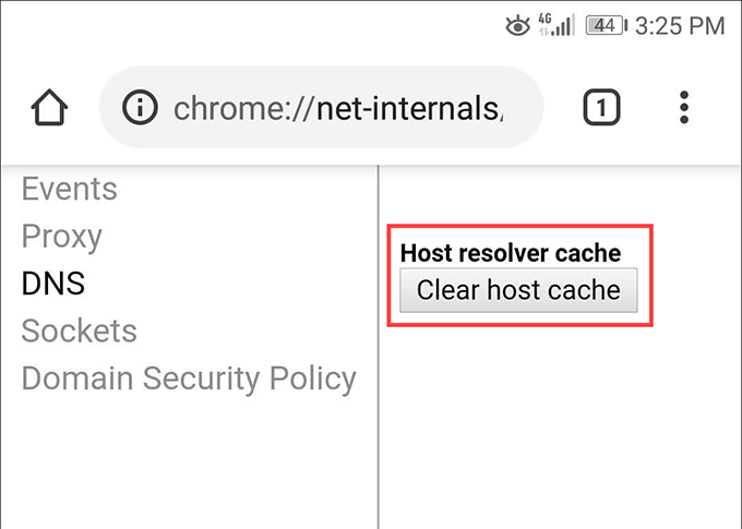 - Select the **DNS **side-tab and tap Clear host cache.