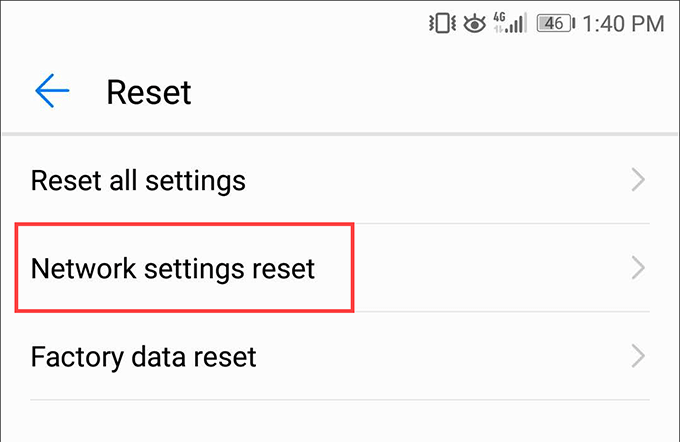 Note: The reset procedure will delete all saved Wi-Fi connections and passwords on your Android device, so do be prepared to set up everything from scratch again.