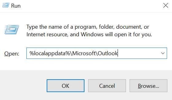 - Press the Windows + R keys at the same time to open the Run box. Type the following path into the box and press Enter. %localappdata%MicrosoftOutlook