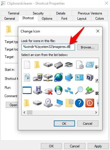 Select an icon for your shortcut, and then select OK > Apply. You can add a keyboard shortcut in the Shortcut key field if you want to clear the clipboard using a keystroke combination. Once you’re done, the clipboard history will be deleted.