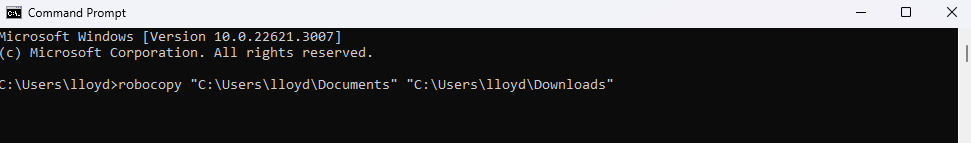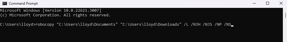 - Next, we will append the following flags in the command /L /NJH /NJS /NP /NS The final command will look like this: robocopy “C:\Users\lloyd\Documents” “C:\Users\lloyd\Downloads” /L /NJH /NJS /NP /NS