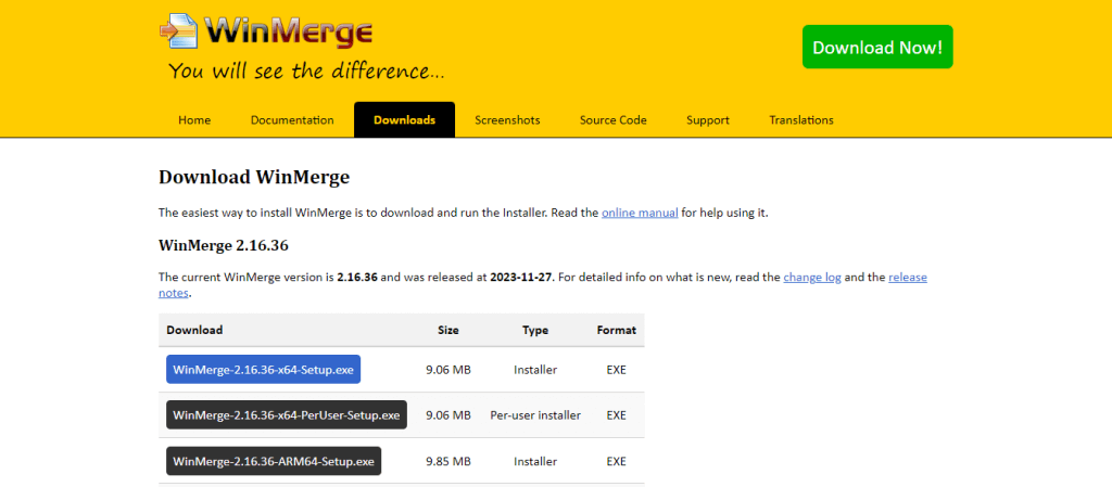 - To start comparing folders using WinMerge, download the software from its official website. Multiple installers are available, though going with the top one is usually the best option.