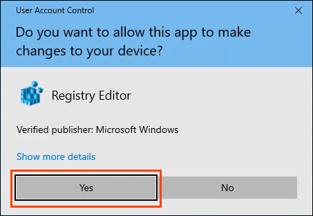 A User Account Control (UAC) window opens asking, Do you want to allow this app to make changes to your device? Select Yes.