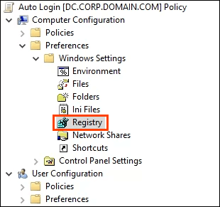- The **Group Policy Management Editor **opens. Navigate to **Computer Configuration **> **Preferences **> **Windows Settings **> **Registry**.