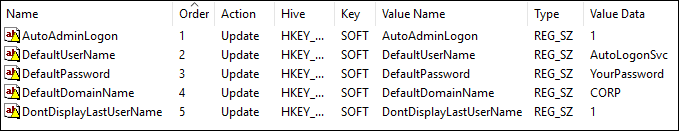 Notice that the password was stored in plain text. Be tremendously cautious about using autologon in a domain. If anyone can open the Registry Editor, they can read the password and username. They will now have access to anything accessible with those credentials. Two precautions can be taken; prevent anyone from accessing the registry editor and use a service account with limited permissions for the autologon.