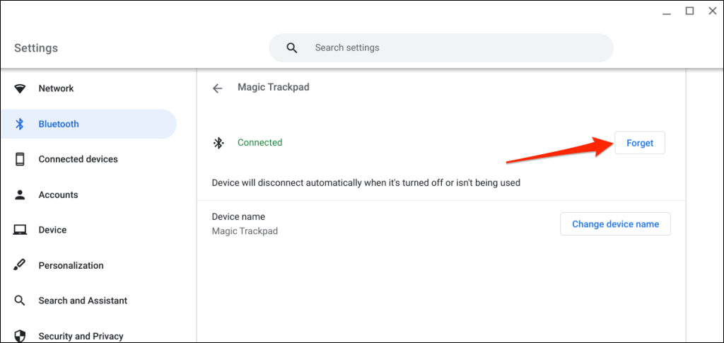 - Select the Forget button to remove the mouse from your Chromebook.