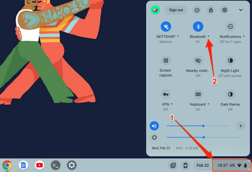 - Select the drop-down arrow below the Bluetooth icon.