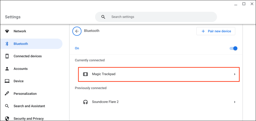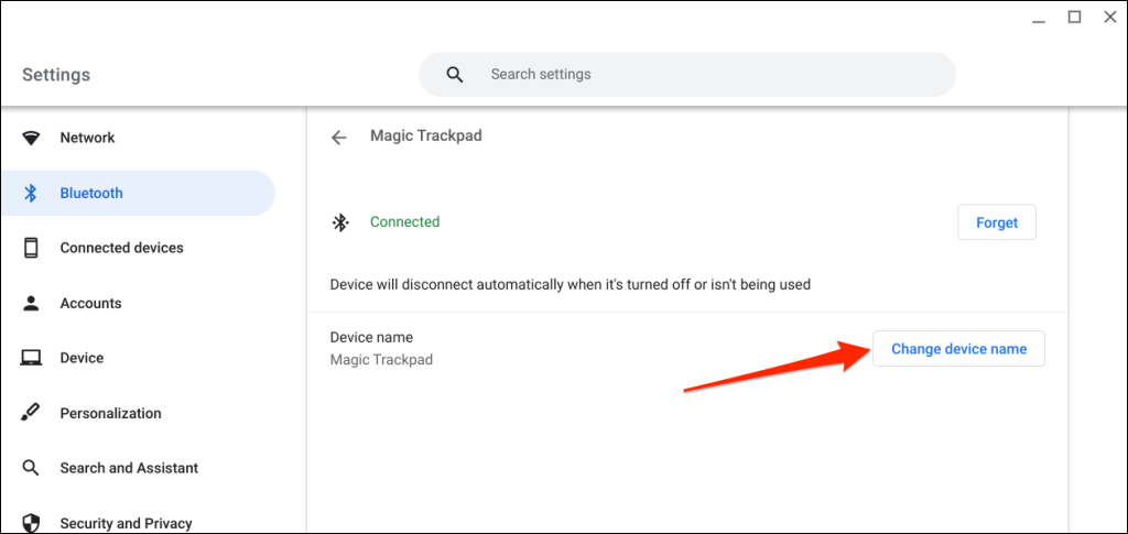 ChromeOS allows you to customize the name of Bluetooth devices and accessories. If you don’t like your Bluetooth mouse factory-set name, change its name in the ChromeOS Bluetooth settings menu.