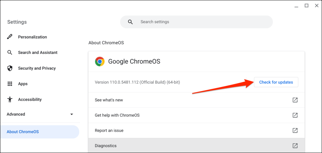 Installing the latest ChromeOS update can fix connectivity-related issues on your Chromebook.