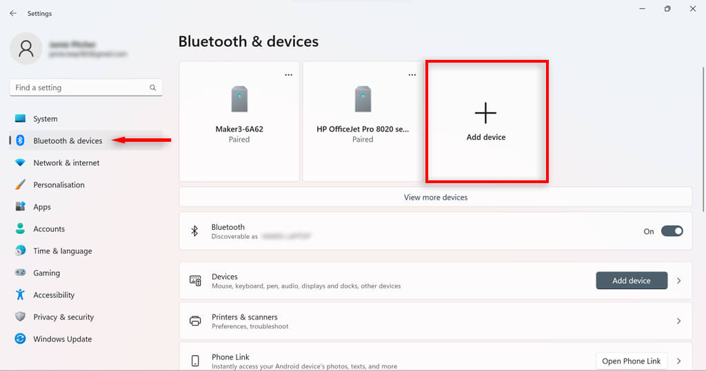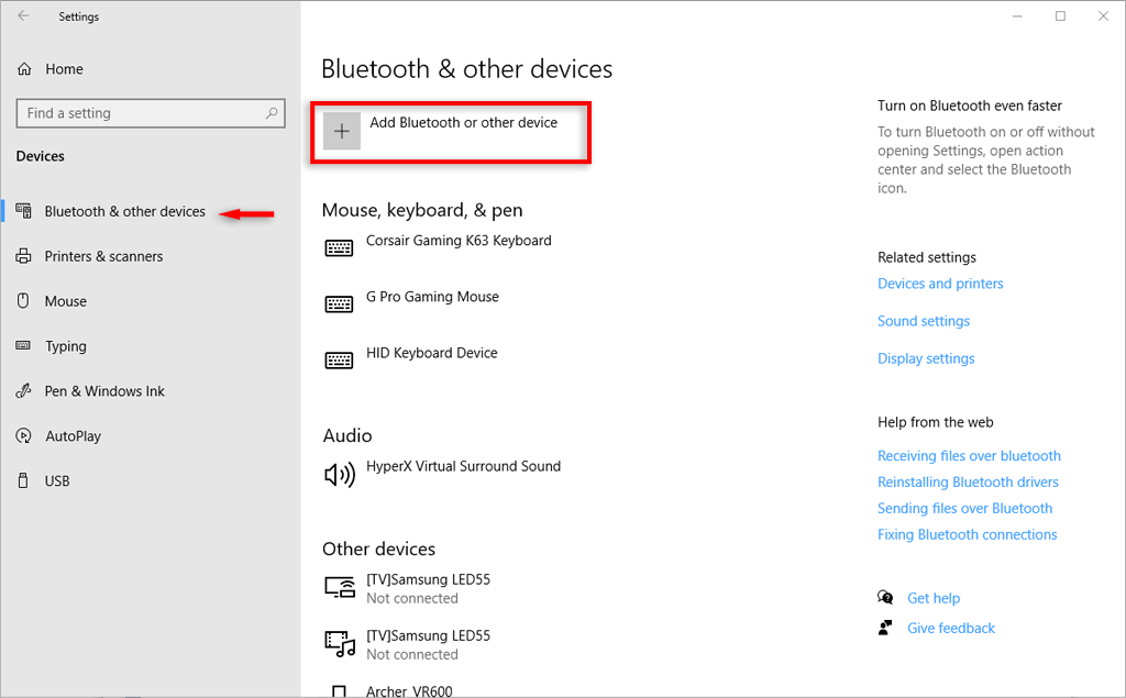 - Go to Devices > Bluetooth & other devices.