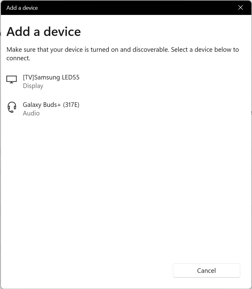 - Wait for your Samsung Galaxy Buds to appear on the devices list and click on them to confirm pairing.