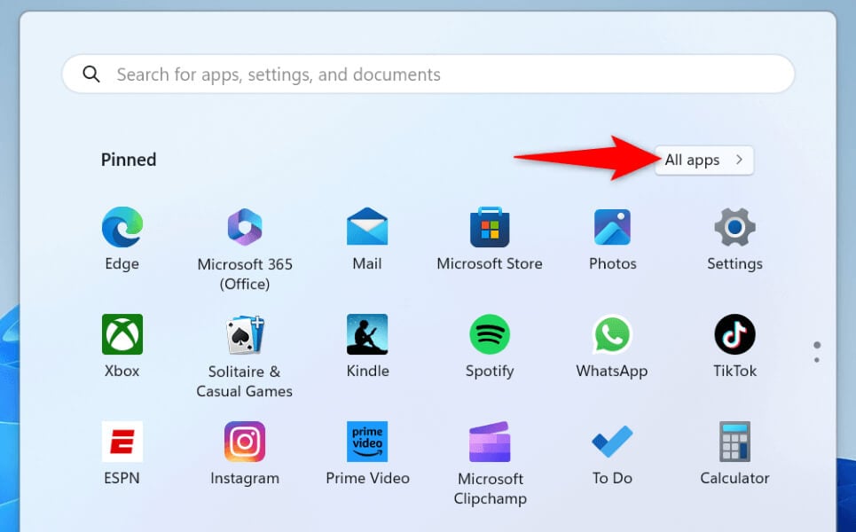 Jump lists for your apps appear in the All apps section of the Start menu. These lists don’t appear when you search for an app or on the main Start menu interface.