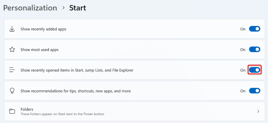 Enable Jump Lists on Windows 11 Using the Settings App