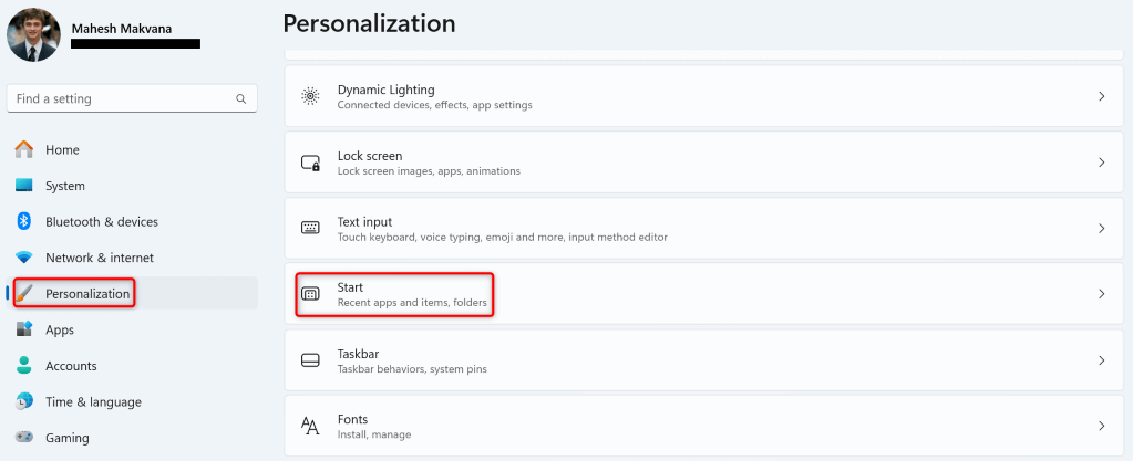 - Choose Start on the right pane. * Turn on the Show recently opened items in Start, Jump Lists, and File Explorer option.