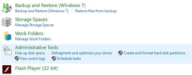 Open Control Panel. Go to System and Security > Administrative Tools.