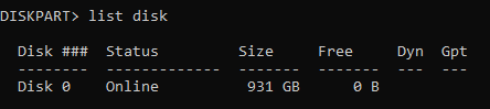 If you’re asked if you’d allow the application to make changes, click Yes. Type** **LIST DISK and press Enter.