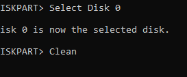 Type CLEAN** **and press Enter. This action will remove all the contents of the disk. So make sure you back your files beforehand.