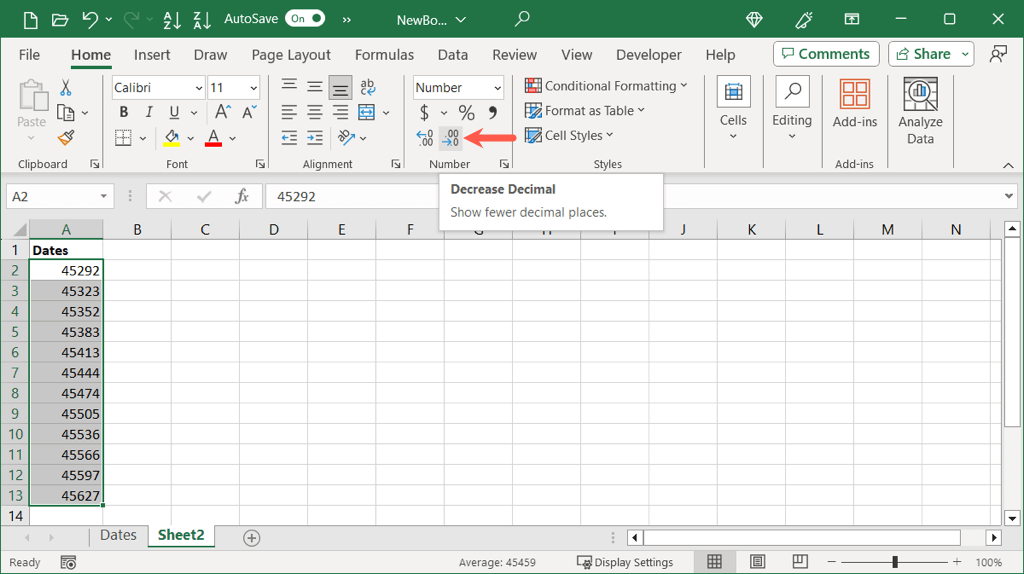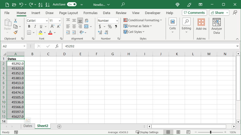 - You’ll then see your dates changed to serial numbers without decimals.