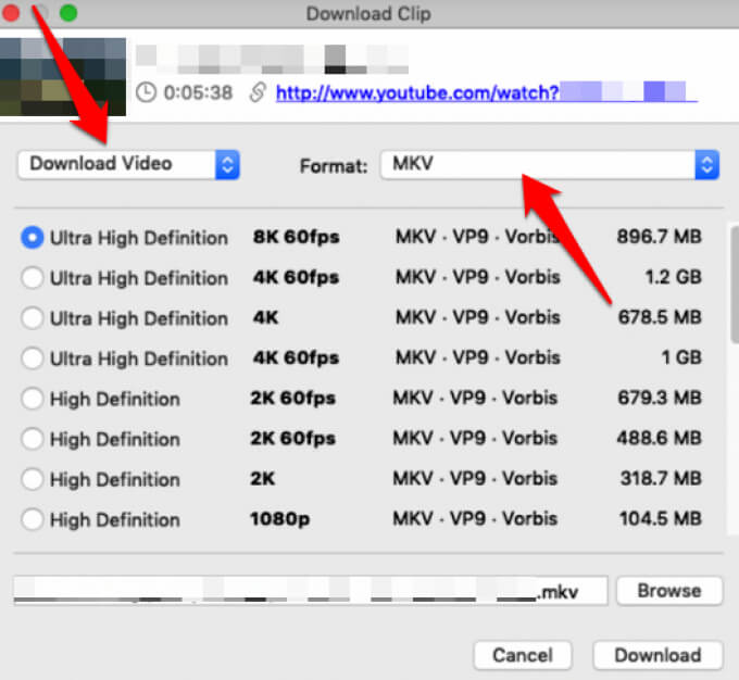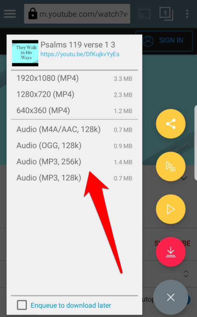 - Select a format and audio quality, and then tap **Download**.