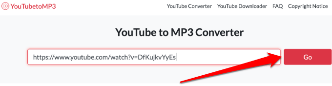 - Copy and paste the YouTube URL to the YouTube to MP3 converter and select Go.