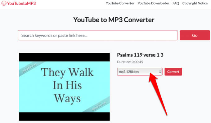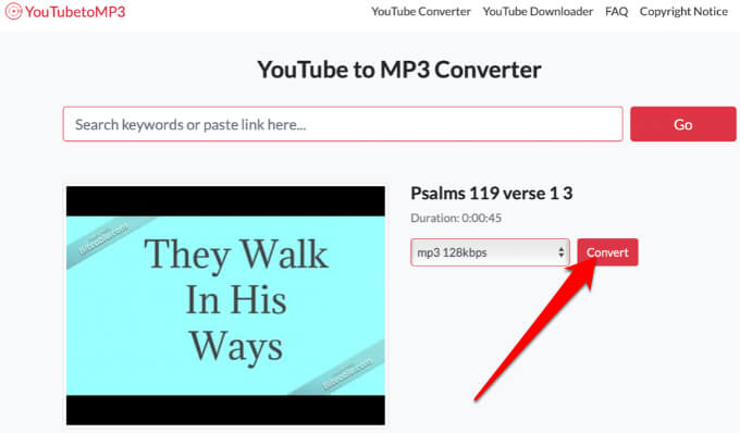 - Go to the YouTube to MP3 website, paste the YouTube video URL and select Go.