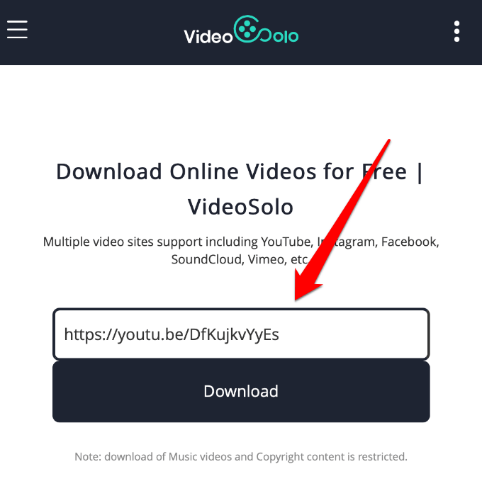 - Download and go to Videosolo, paste the YouTube URL in the text box and tap Download.
