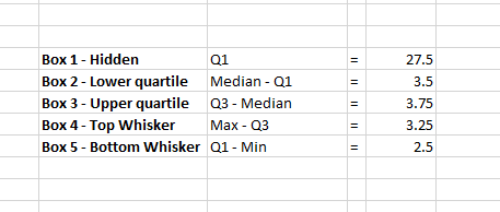 Next, calculate the quartile differences in a separate table (these relate to the box heights):