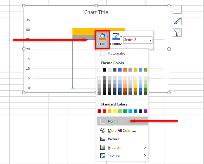 - Right-click the part of the graph that represents “Box 1 – hidden” and click Fill then click No Fill.
