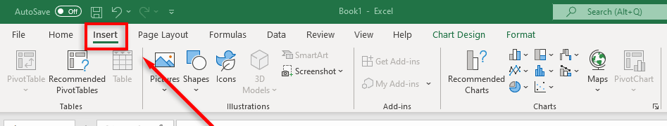 - In the ribbon, select the Insert tab.