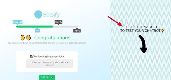 - You’ll be prompted to click the widget to test your chatbot on the right side of your screen. Test it by typing in one of the questions from your FAQ list and see how the bot responds.