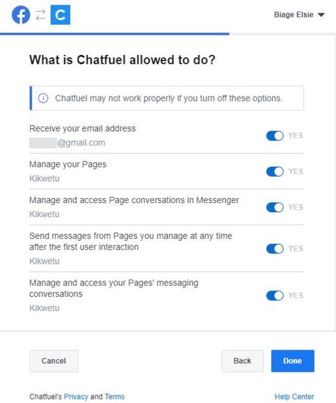 - Link your Facebook page. Once the login is confirmed, you’ll be redirected to your Chatfuel dashboard.