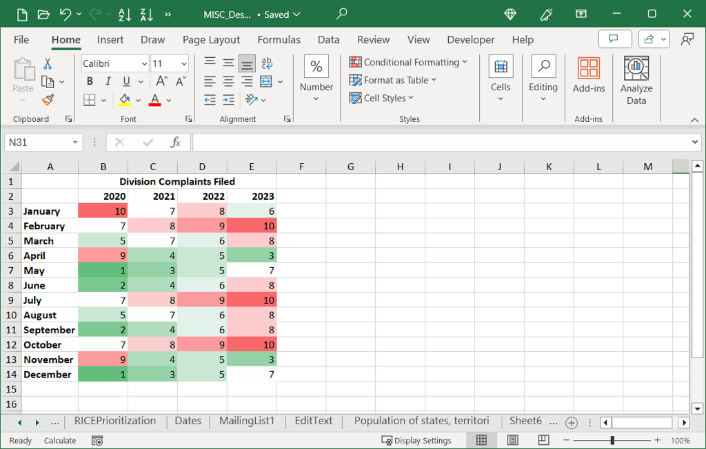 The simplest way to create a heat map in Excel is using conditional formatting. With it, you’ll see different colors or shades of colors based on the values in your cells.